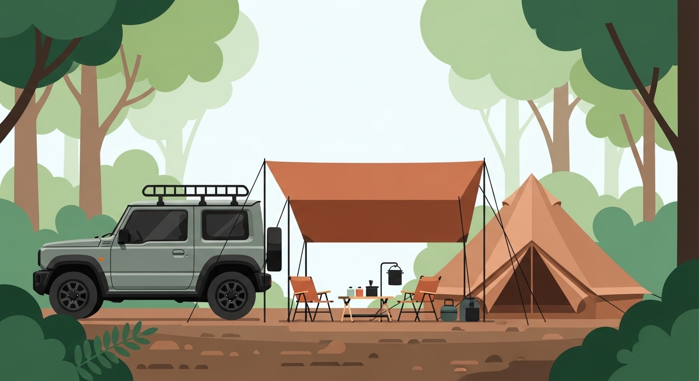 キャンプ初心者が不安に感じるのが、テントの設営や撤収作業です。慣れないうちは時間がかかってしまいますよね。車が近くにあると、作業効率が格段に上がります。